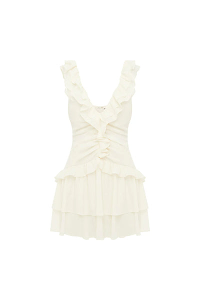 Flirty and feminine, our Kaycey Mini Dress is adorned with frills and a low cut neckline, perfect for date night.