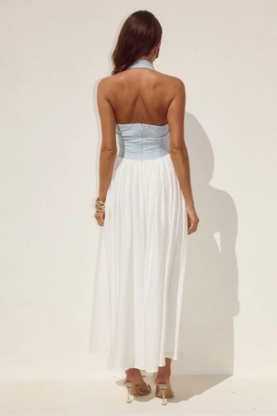 In fresh contrast tones, our Sammi Midi Dress is a chic and versatile piece that can easily be dressed up or down.