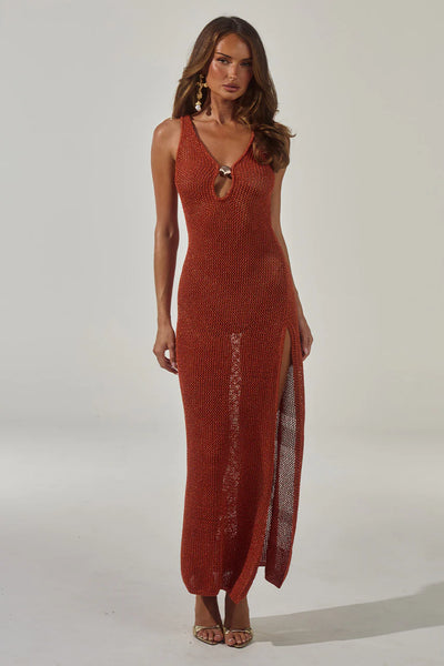 Our Keagan Maxi Dress features contrast textures and a fresh print, perfect for summer days ahead.