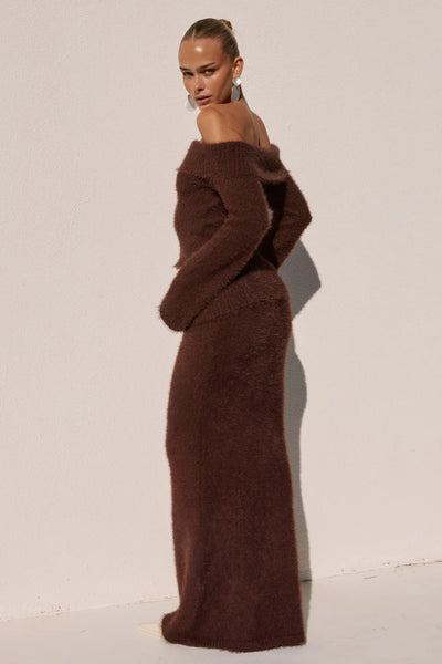 With a fold over waist band that sits low on the hip, crafted from a cozy knit fabric, our Anneliese Maxi Skirt will see you through the cooler months with an effortless look, pair with our Anneliese Top for the complete look.