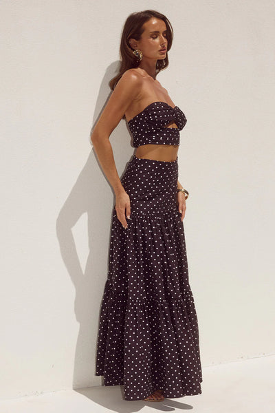 Ayla Tiered Top & Maxi Skirt - Black/White Polka