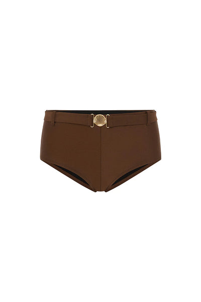 Covergae and comfort with a bit of fun, our Monaco Bottom has a subtly cheeky cut and seashell hardware to elevate your next beach day. Pair with our Monaco Top for the complete look.